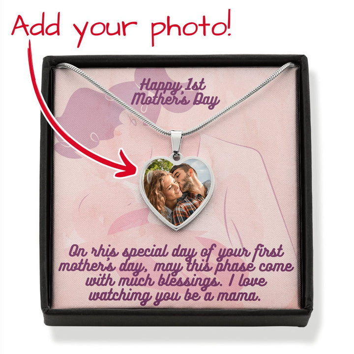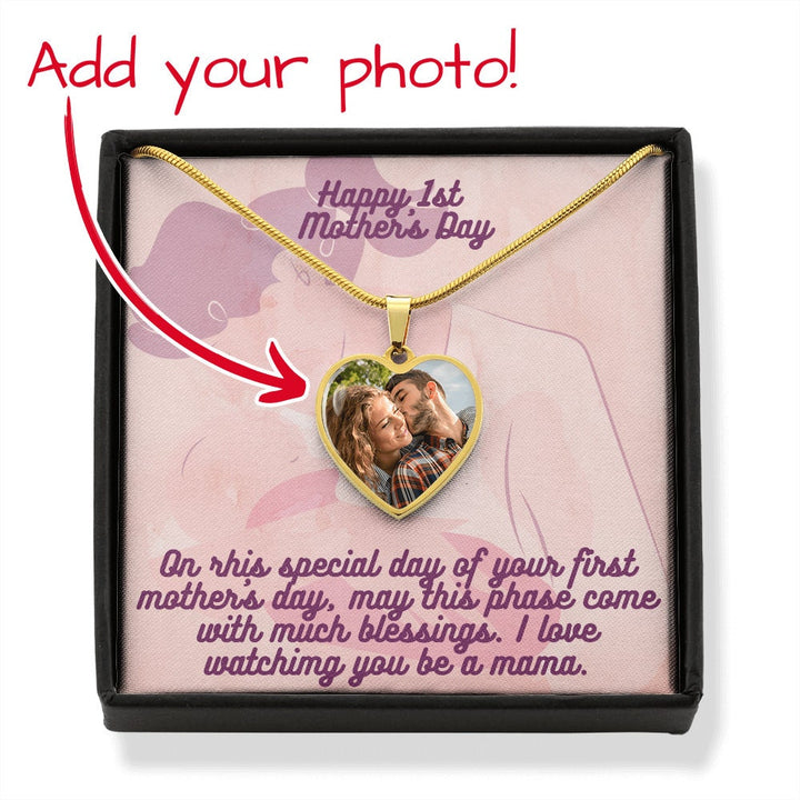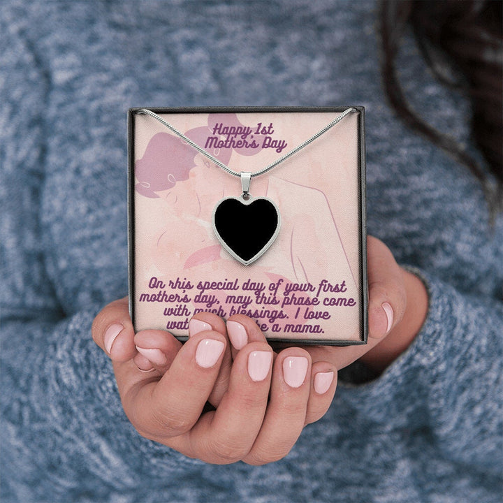 1st Mother's Day:Customized Shatterproof liquid glass Pendant, Luxury Necklace - Love Watching You Be A Mama message Card,Personalized Gift
